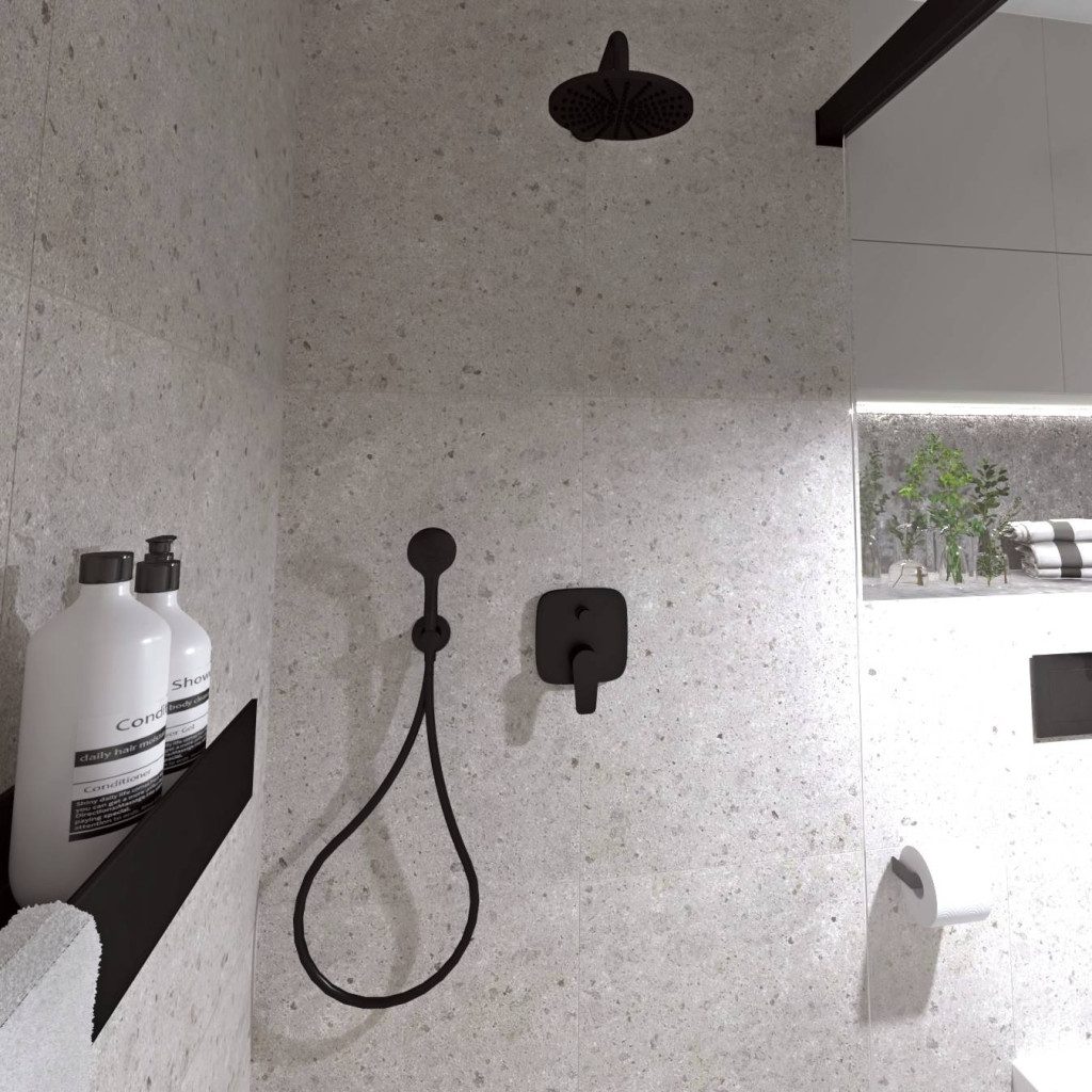 • vysoko kvalitná umelohmotná sprchová hadica čierného vzhľadu
