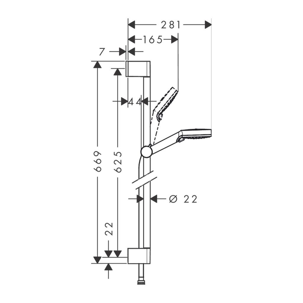 • Dĺžka sprchovej tyče: 669 mm