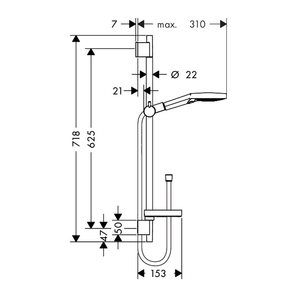 • Priemer sprchovej tyče: 22 mm