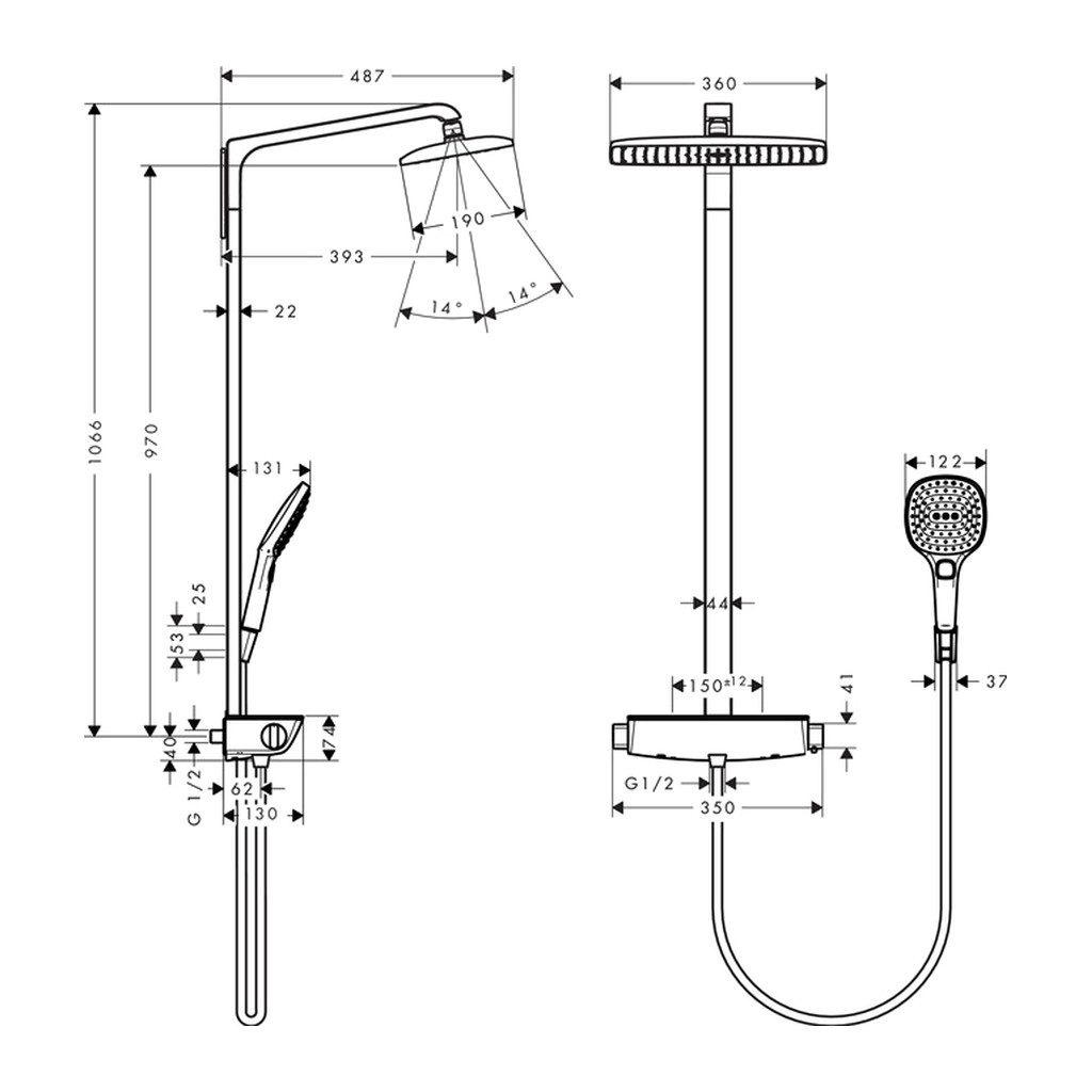 Domov » Sanita » Kúpeľne » Sprchy » Sprchové systémy » Hansgrohe Raindance E – Showerpipe 360 1jet s termostatom, biela/chróm 27112400