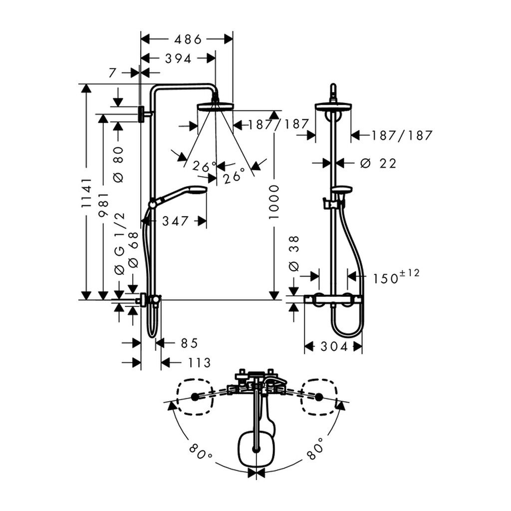 • Zahŕňa: hlavová sprcha, ručná sprcha, termostat, sprchová hadica, jazdec