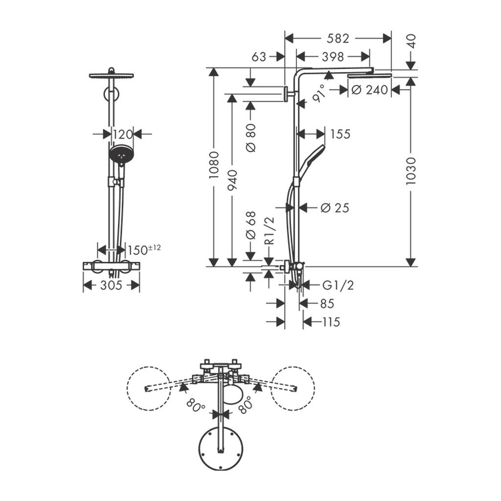 • Dĺžka sprchovej tyče: 1080 mm