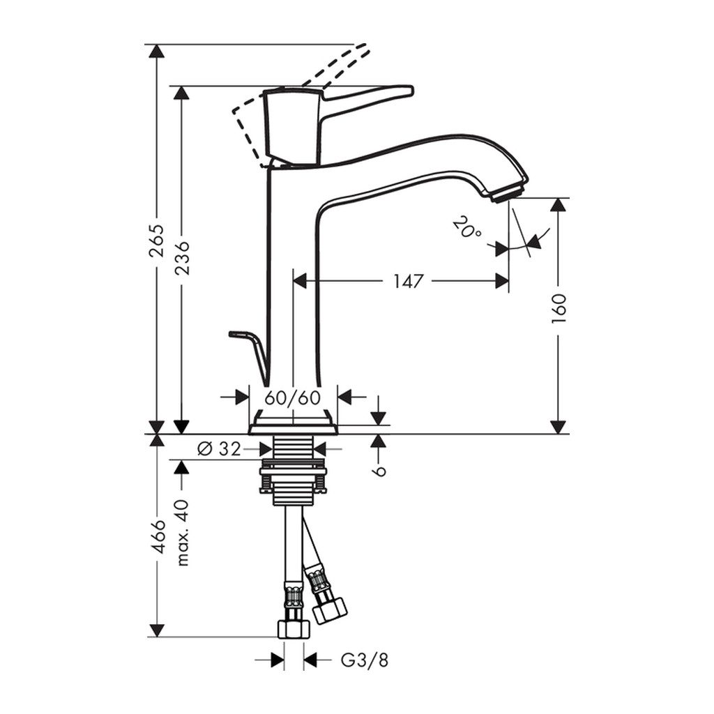 Domov » Sanita » Kúpeľne » Vodovodné batérie » Umývadlové batérie » Umývadlové batérie s odtokovou garnitúrou » Hansgrohe Metropol Classic – Páková umývadlová batéria 160 s odtokovou súpravou s tiahlom, chróm 31302000