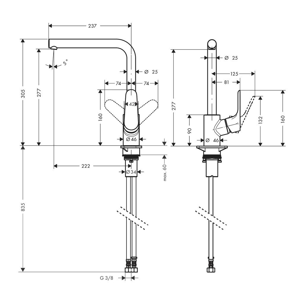 Domov » Sanita » Kuchyne » Drezové batérie » Drezové batérie stojánkové s otočným ramenom » Hansgrohe Focus M41 – Kuchynská páková batéria 280, 1jet, matná čierna 31817670