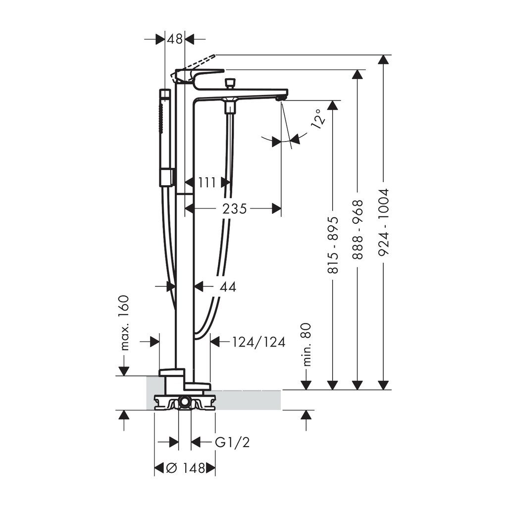 Domov » Sanita » Kúpeľne » Vodovodné batérie » Vaňové batérie » Vaňové batérie na podlahu » Hansgrohe Metropol – Vaňová batéria na podlahu s plnou pákou, matná čierna 32532670