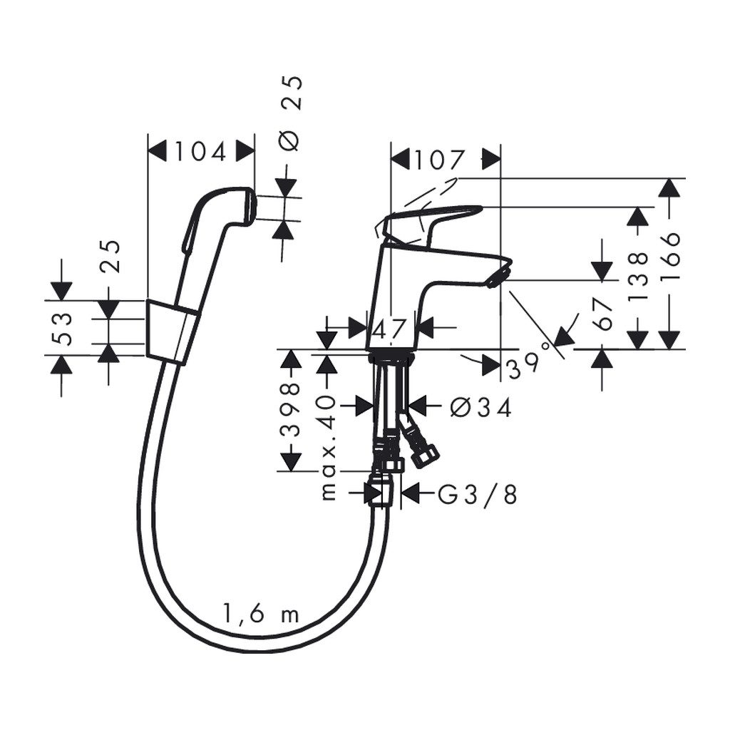 Domov » Sanita » Kúpeľne » Vodovodné batérie » Umývadlové batérie » Umývadlové batérie bez odtokovej garnitúry » Hansgrohe Logis – Páková umývadlová batéria s ručnou sprchou Bidette a sprchovou hadicou 160 cm, chróm 71290000