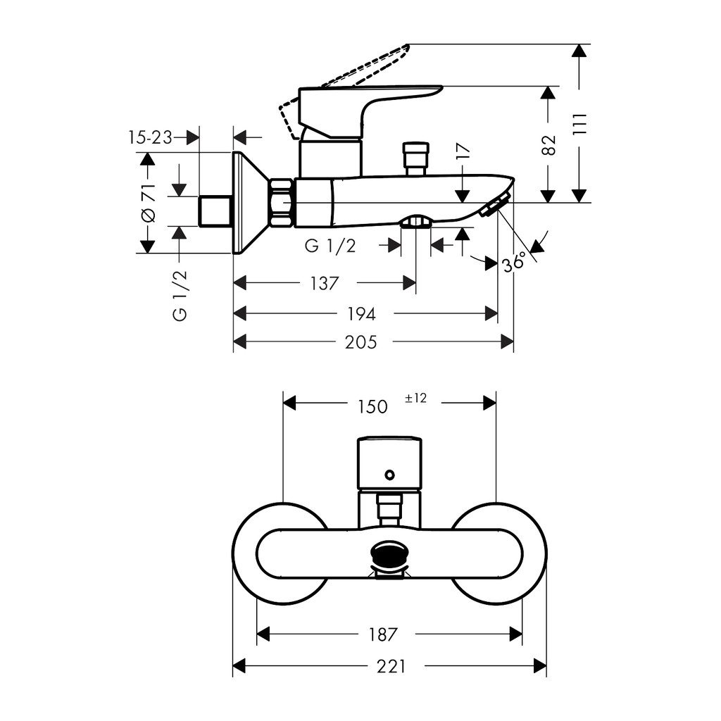 • Rozstup stredov: 150 mm ± 12 mm