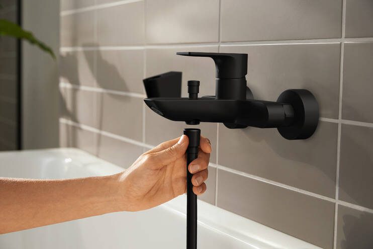 Kvalita, ktorá sa hodí k vášmu štýlu: Vaňová batéria Rebris E (s montážou na omietku) v matnej čiernej farbe