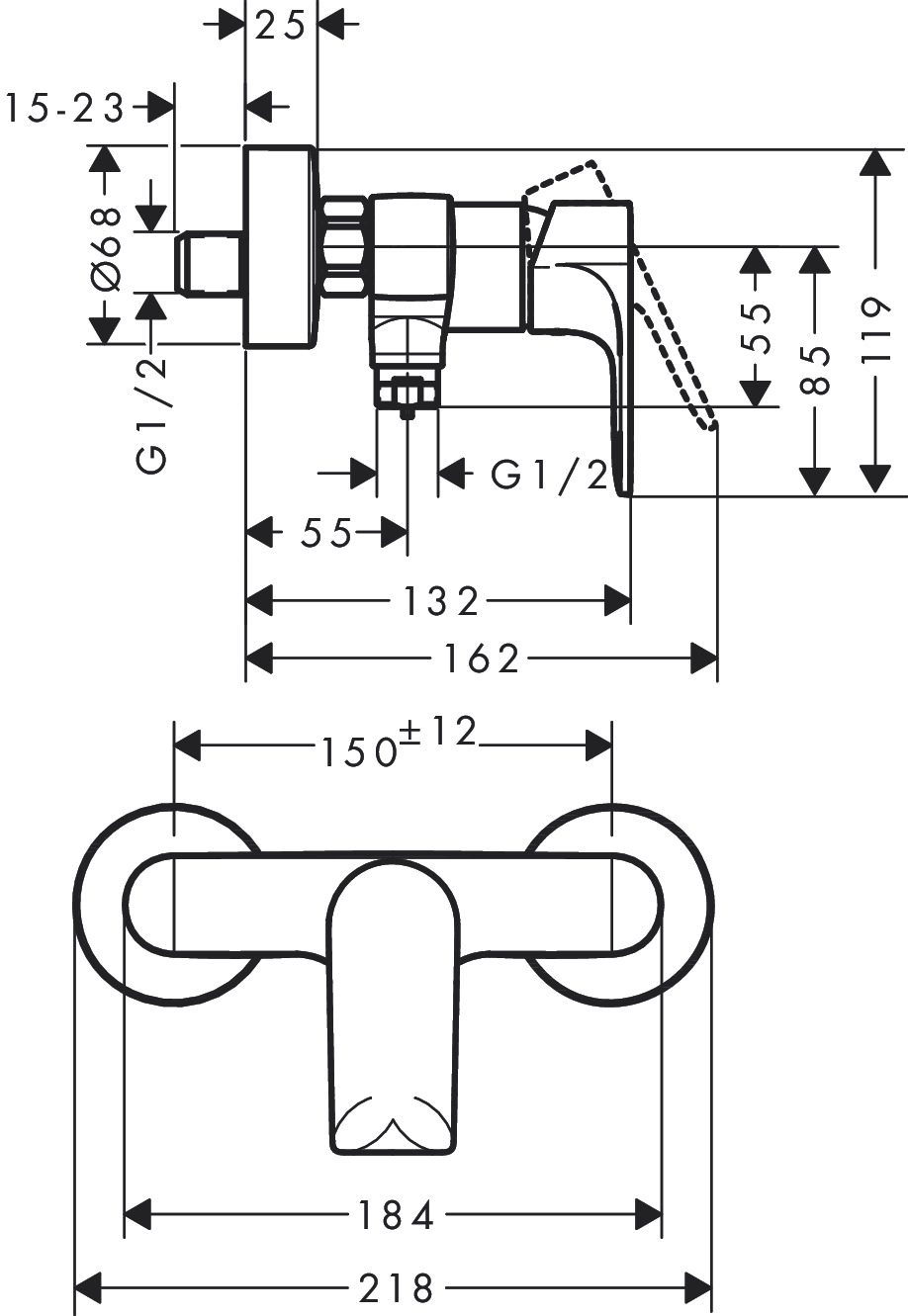 Domov » Sanita » Kúpeľne » Vodovodné batérie » Sprchové batérie » Sprchové batérie nástenné » Hansgrohe Rebris E – Páková sprchová batéria na stenu, chróm 72650000