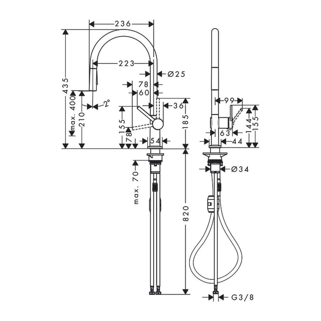 Domov » Sanita » Kuchyne » Drezové batérie » Drezové batérie s výsuvnou sprchou » Hansgrohe Talis M54 – Páková kuchynská batéria 210, vyťahovateľná sprška, 2jet, chróm 72800000