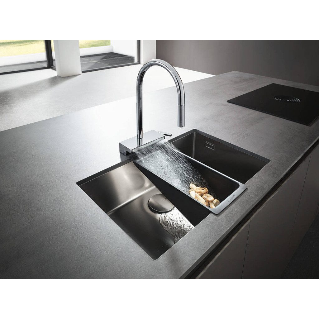 • Zahŕňa: páková kuchynská batéria, box na hadicu, multifunkčné sitko