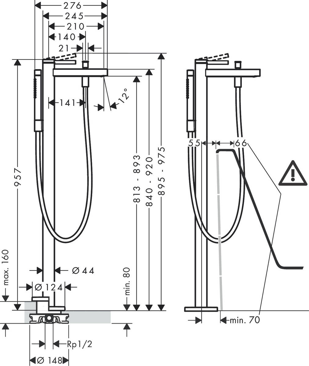 Domov » Sanita » Kúpeľne » Vodovodné batérie » Vaňové batérie » Vaňové batérie na podlahu » Hansgrohe Finoris – Páková vaňová batéria voľne stojaca na podlahe, čierna matná 76445670