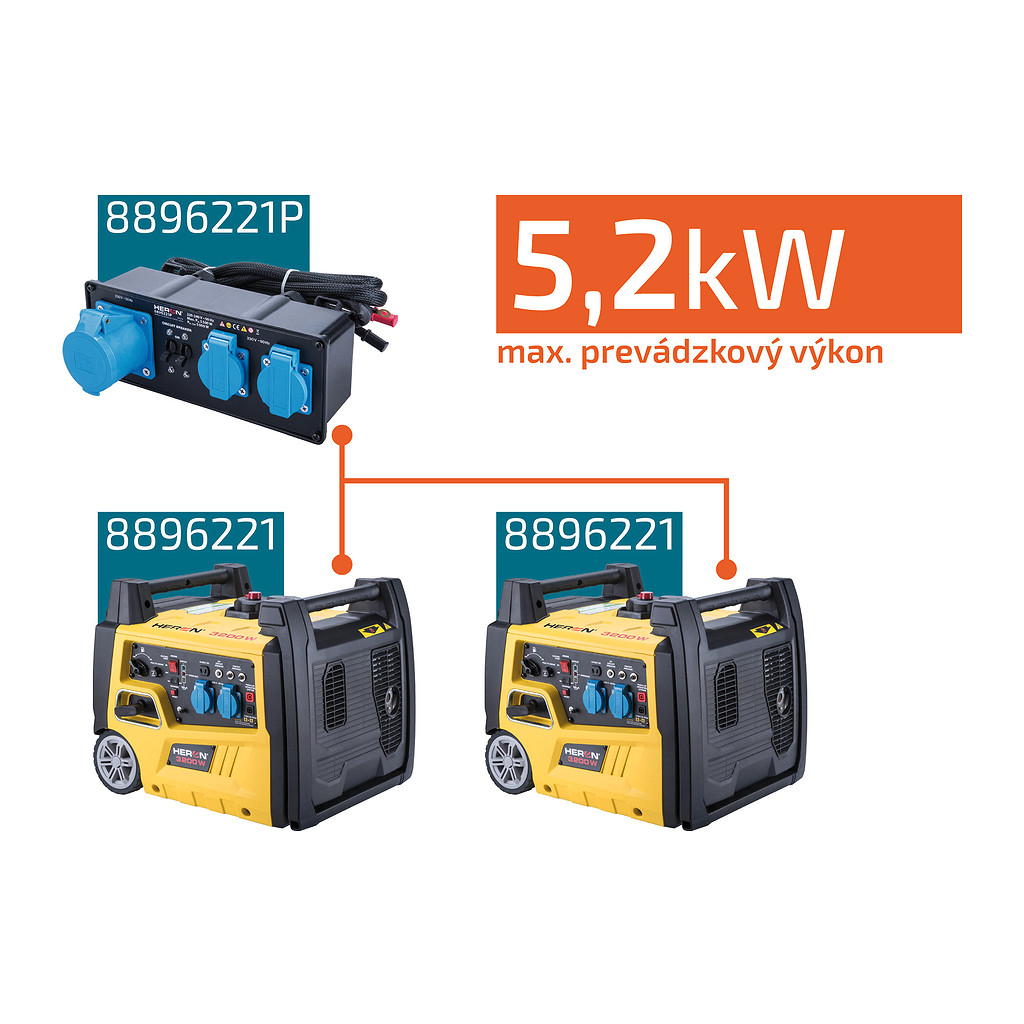 • prepojením dvoch elektrocentrál 8896221 je možné získať nominálny výkon 5,2kW