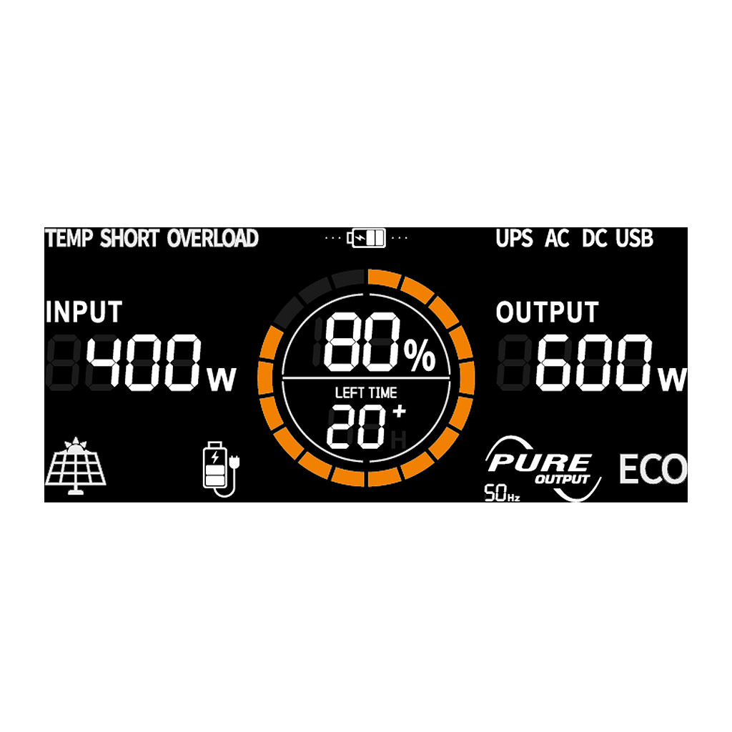 • ľahko čitateľný podsvietený displej zobrazujúci aktuálny odoberaný aj nabíjací výkon, stav a čas výdrže batérie pri momentálnom odoberanom výkone