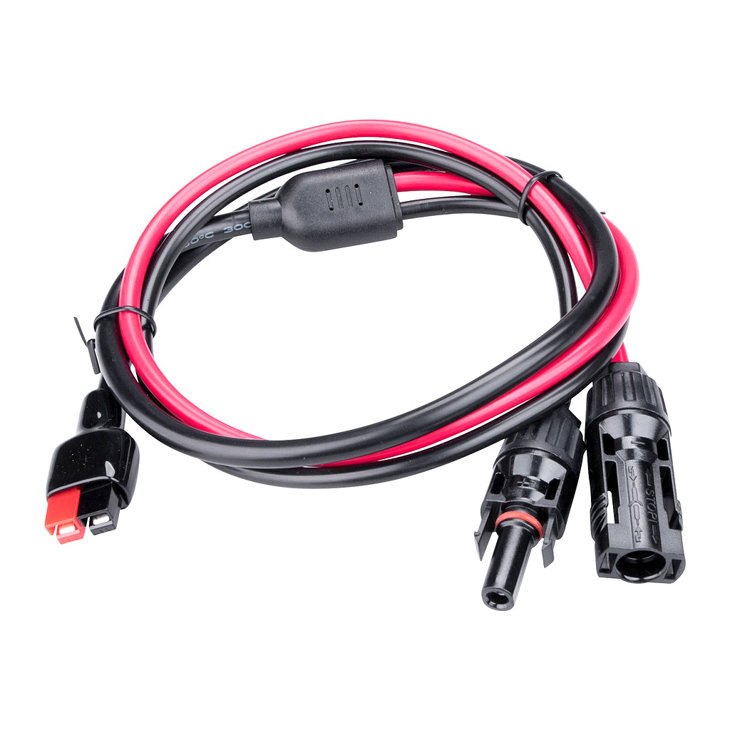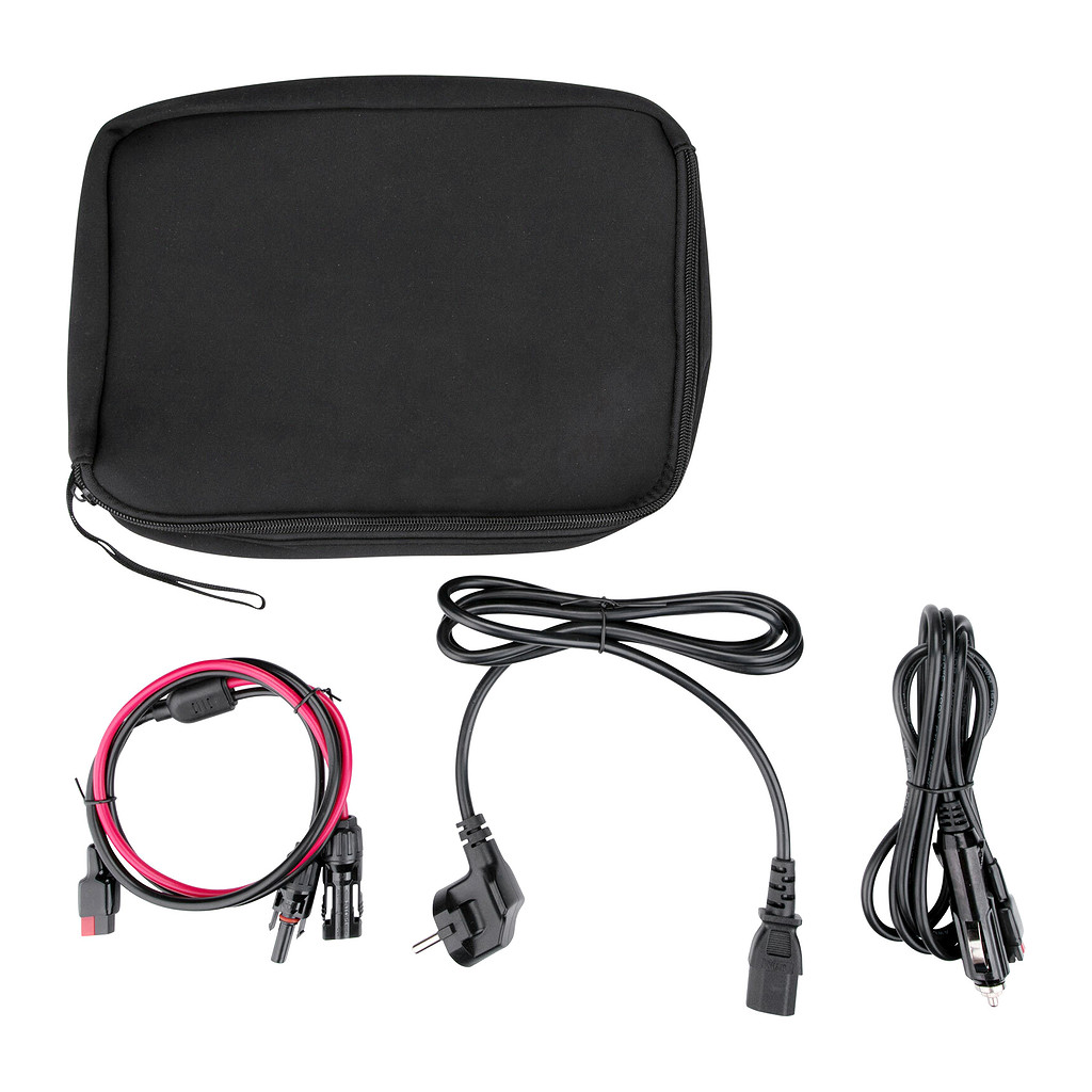 Náhradné káble na nabíjanie stanice z 230 V zásuvky, z 12 V autozásuvky a zo solárneho panelu (koncovka MC4).