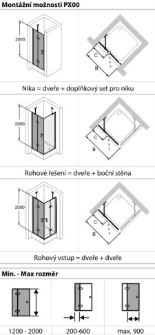 • Na montáž do niky a na kombináciu s bočnou stenou Astra alebo pre rohový vstup
