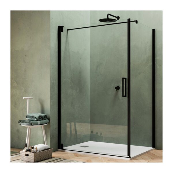 Domov » Sanita » Kúpeľne » Sprchové kúty » Otváravé dvere » Hüppe Astra – Walk-in/Bočná stena pre krídlové dvere s pevným segmentom 1000×2000 mm pre 4-uholník, profil Black Edition, číre sklo s Anti-Plaque PX0204.123.322