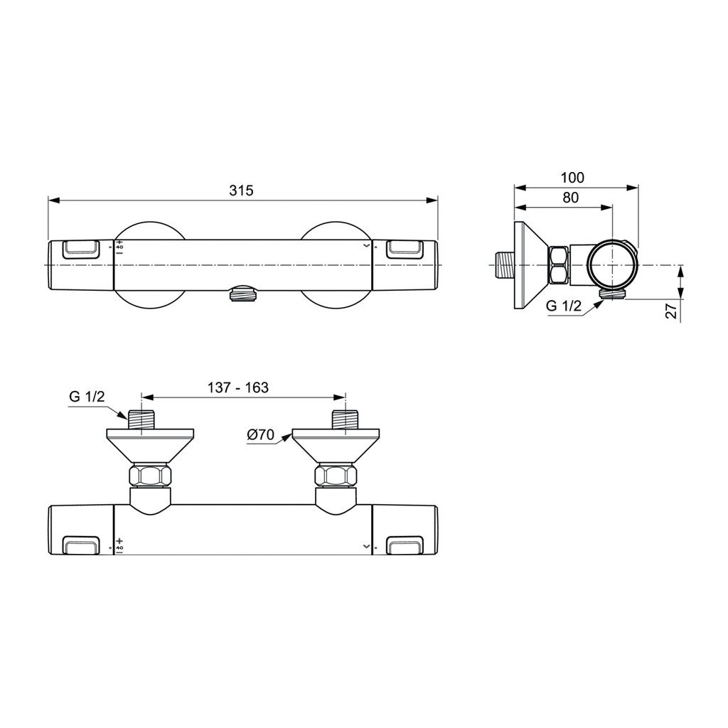 Domov » Sanita » Kúpeľne » Vodovodné batérie » Termostaty » Termostatické sprchové batérie » Ideal Standard CeraTherm T25 – Sprchová termostatická batéria nástenná, chróm A7201AA