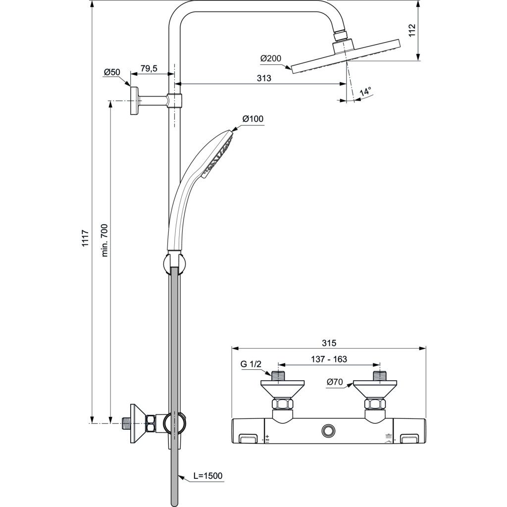 Domov » Sanita » Kúpeľne » Sprchy » Sprchové systémy » Ideal Standard CeraTherm T25 – Sprchový termostatický systém nástenný, chróm A7208AA
