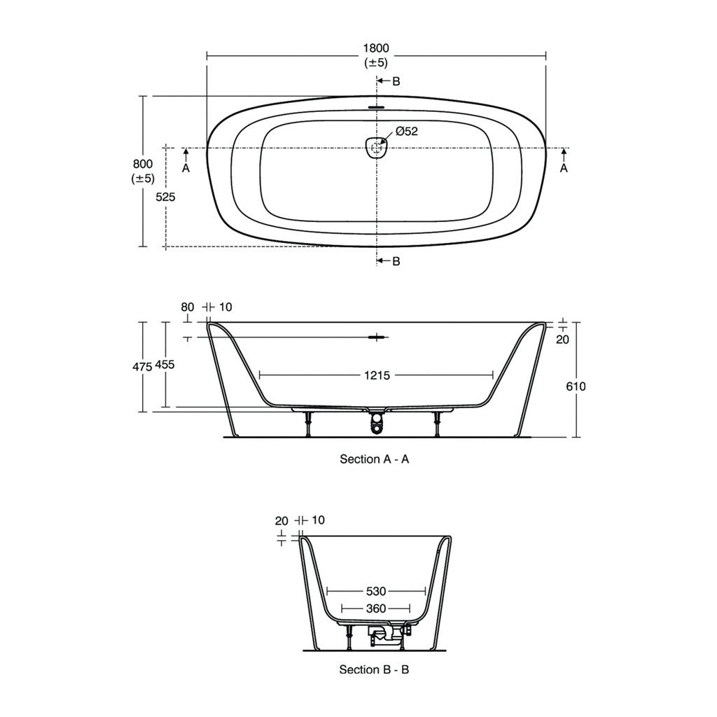 Ideal Standard Dea – Vaňa 1800×800 mm, voľne stojaca, s prepadom, biela E306701