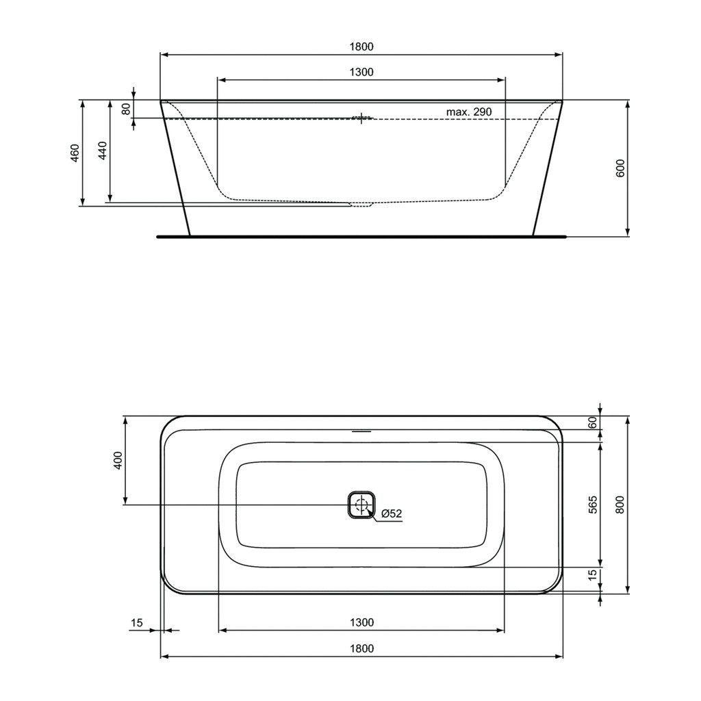 Domov » Sanita » Kúpeľne » Vane » Voľne stojace vane » Ideal Standard Tonic II – Vaňa voľne stojaca 1800×800 mm, s prepadom, biela E398101