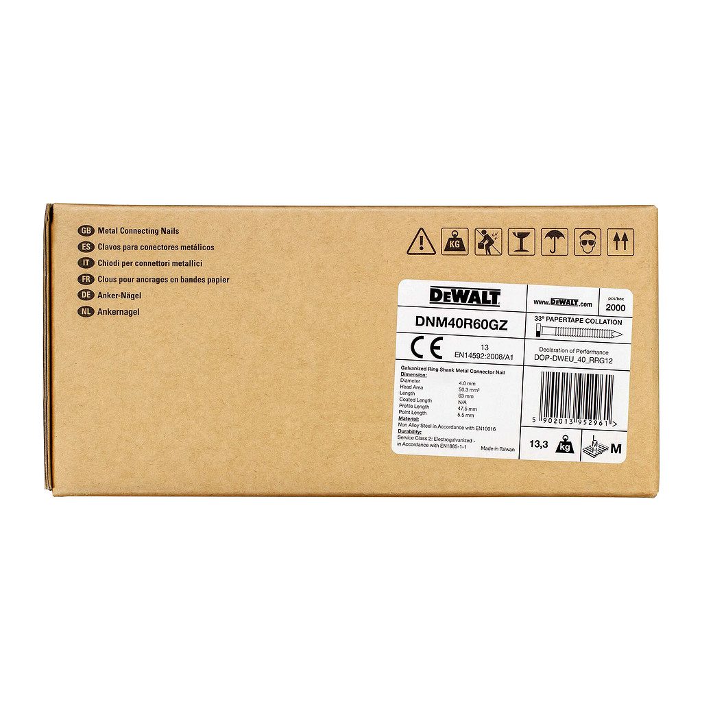 DeWALT DNM40R60GZ – Klince pozinkované krúžkované pre DCN693, 4×60mm, 2000ks