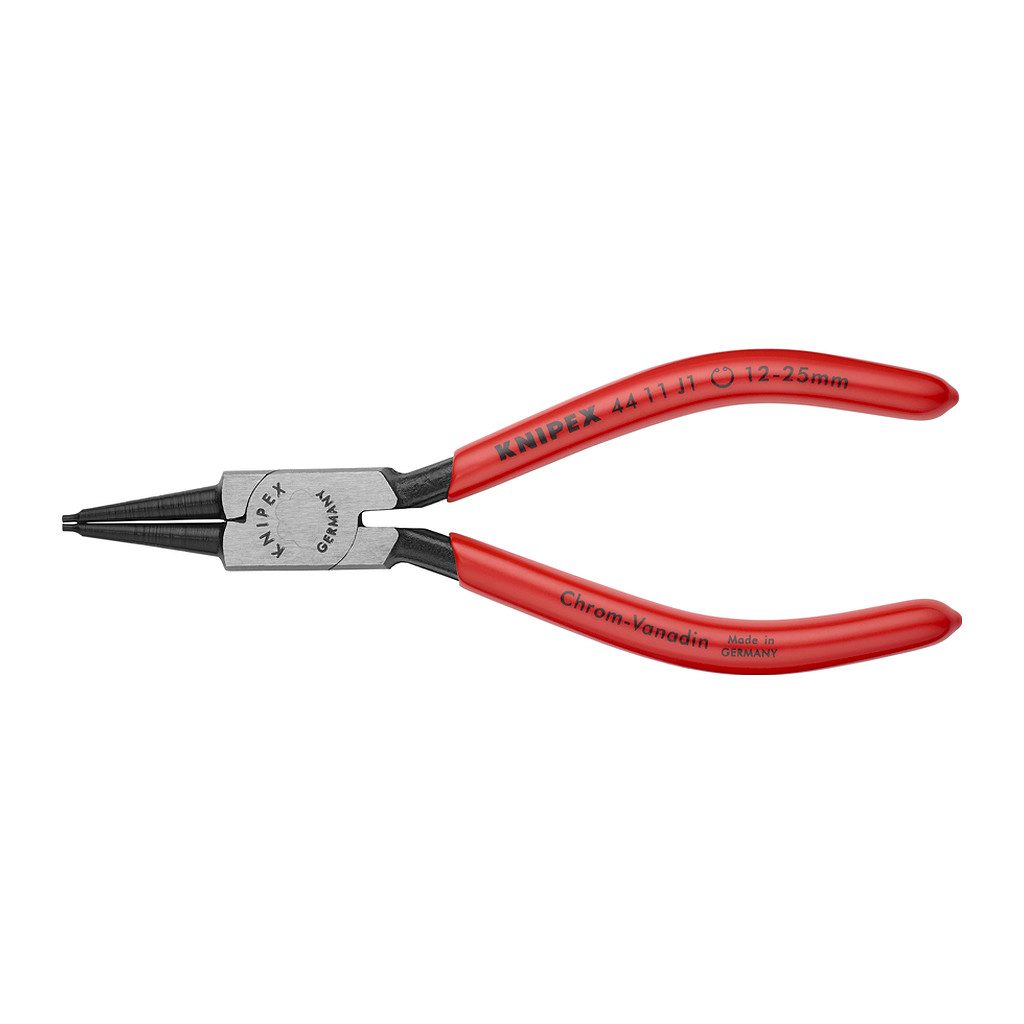 Domov » Náradie » Ručné náradie » Kliešte » Segerové kliešte » Knipex 44 11 J1 – Kliešte na poistné krúžky pre vnútorné poistné krúžky vo vŕtaných otvoroch poplastované čierne atramentované 140 mm