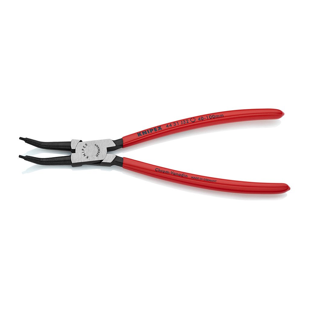 Domov » Náradie » Ručné náradie » Kliešte » Segerové kliešte » Knipex 44 31 J32 – Kliešte na poistné krúžky pre vnútorné poistné krúžky vo vŕtaných otvoroch 45° ohyb poplastované čierne atramentované 225 mm