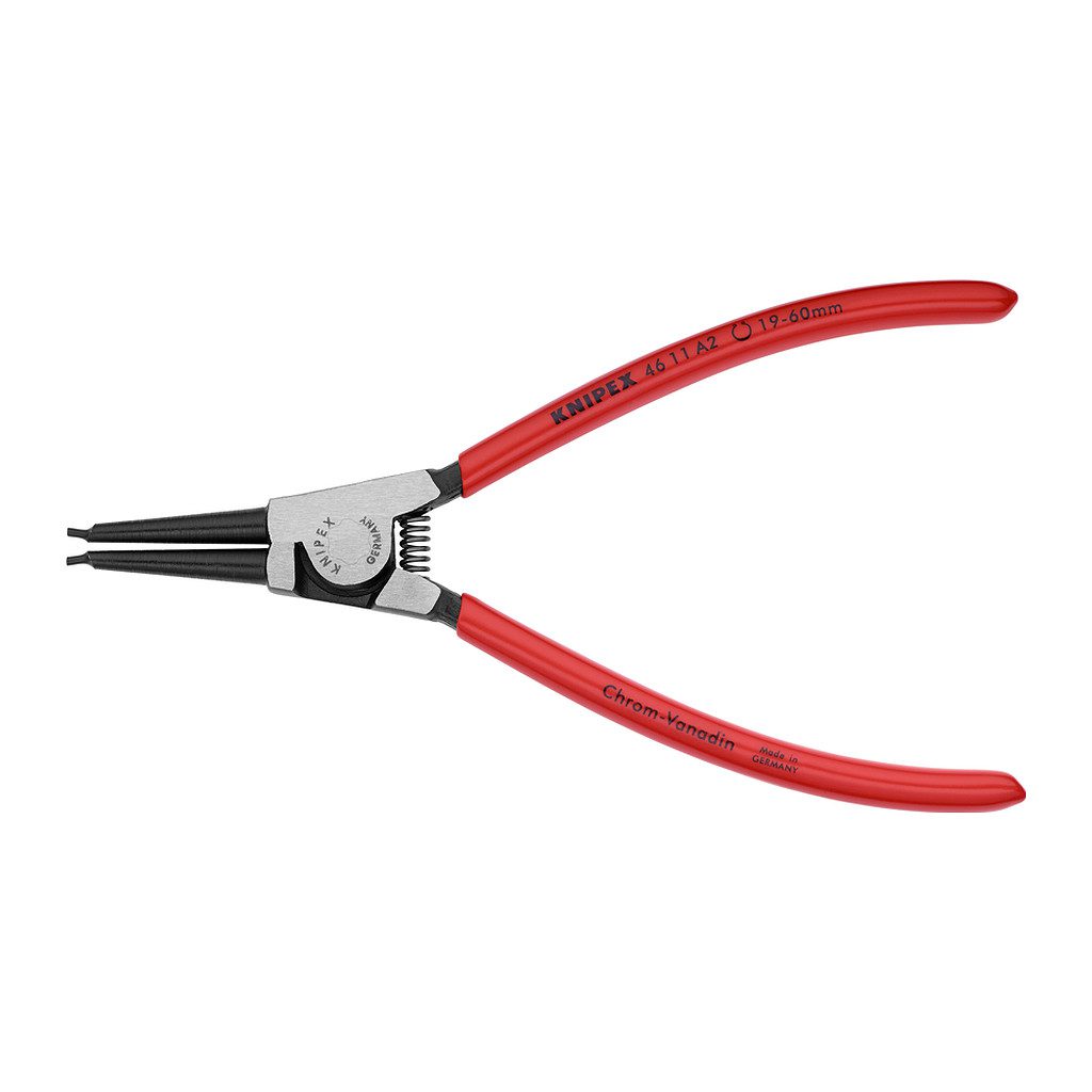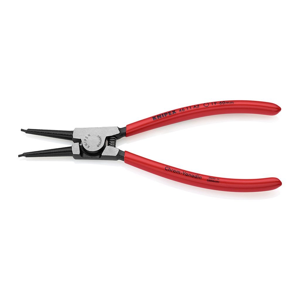 Domov » Náradie » Ručné náradie » Kliešte » Segerové kliešte » Knipex 46 11 A2 – Kliešte na poistné krúžky pre vonkajšie poistné krúžky na hriadeľoch poplastované čierne atramentované 180 mm