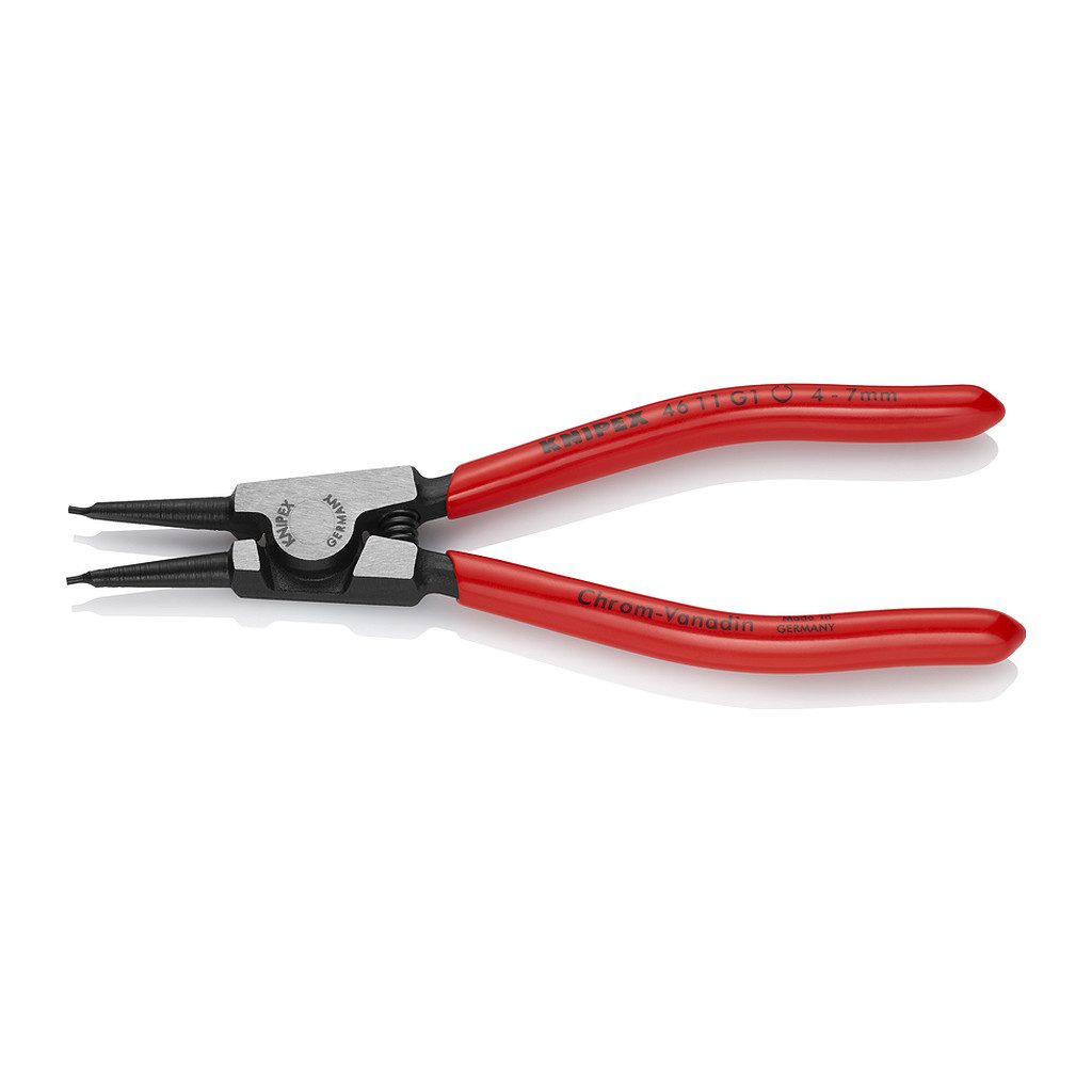 Domov » Náradie » Ručné náradie » Kliešte » Segerové kliešte » Knipex 46 11 G1 – Kliešte na poistné krúžky na uchopenie krúžkov na hriadeľoch poplastované čierne atramentované 140 mm