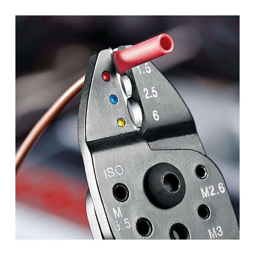 • Na rezanie káblov, odizolovanie drôtu a lisovanie izolovaných a neizolovaných koncoviek, konektorov a plochých konektorov