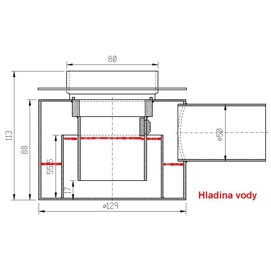 • Obsah zápachovej uzávery cca 7 dcl. ( viď obrázok)