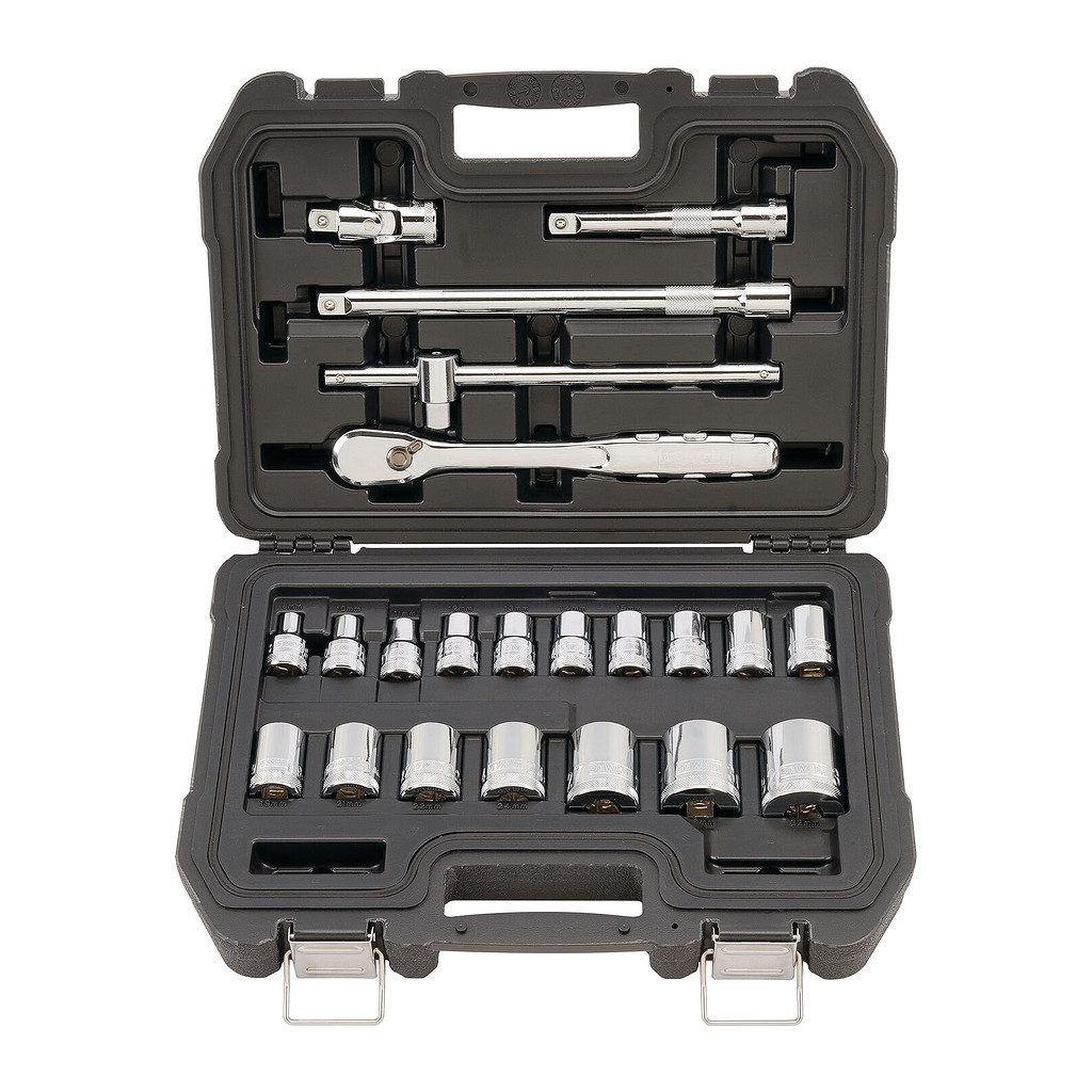 • 22 dílná sada 1/2″ šestihranných gola hlavic, ráčny, nástavců