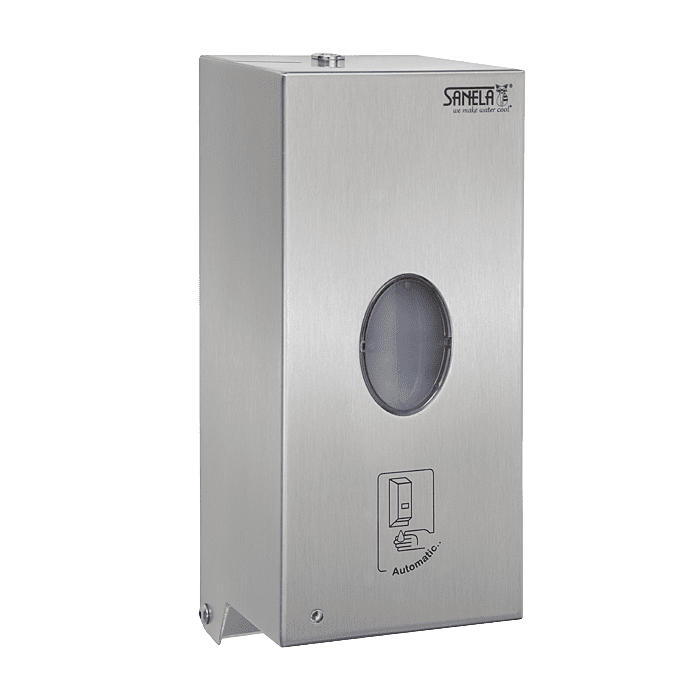 Domov » Sanita » Kúpeľne » Kúpeľňové doplnky » Dávkovače mydla » Sanela – Automatický nerezový nástenný dávkovač na tekuté a gélové dezinfekcie a mydla