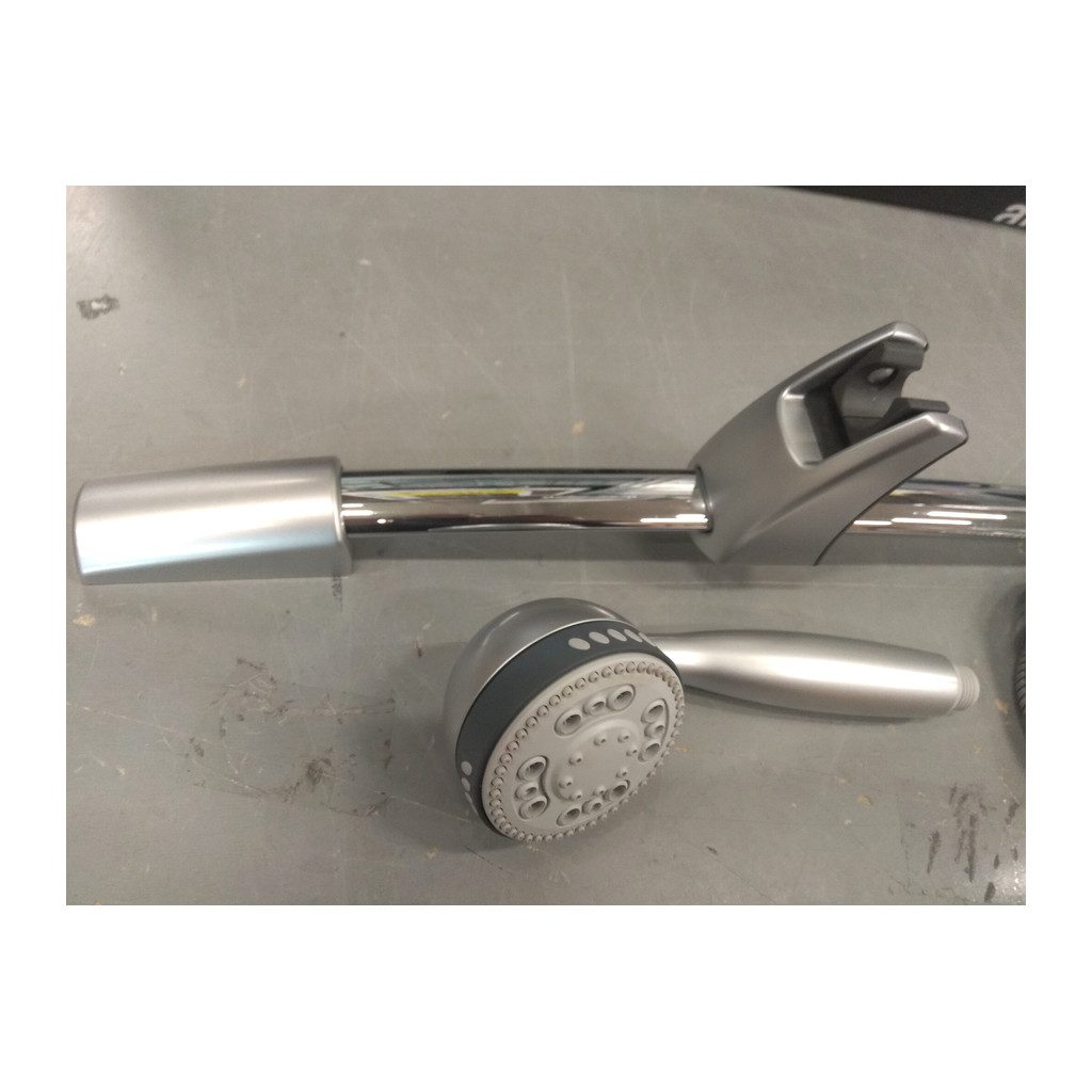 Sanicro sprchový komplet / prevedenie matný chrómvypuklý tvar pojazdnej tyčes pojazdným háčikom na 5 polohovú ručnú sprchu, (od masážnej po rain prúd)1,5 m hadica kovovávrátane poličky na mydlovrátane inštalačných skrutiek
