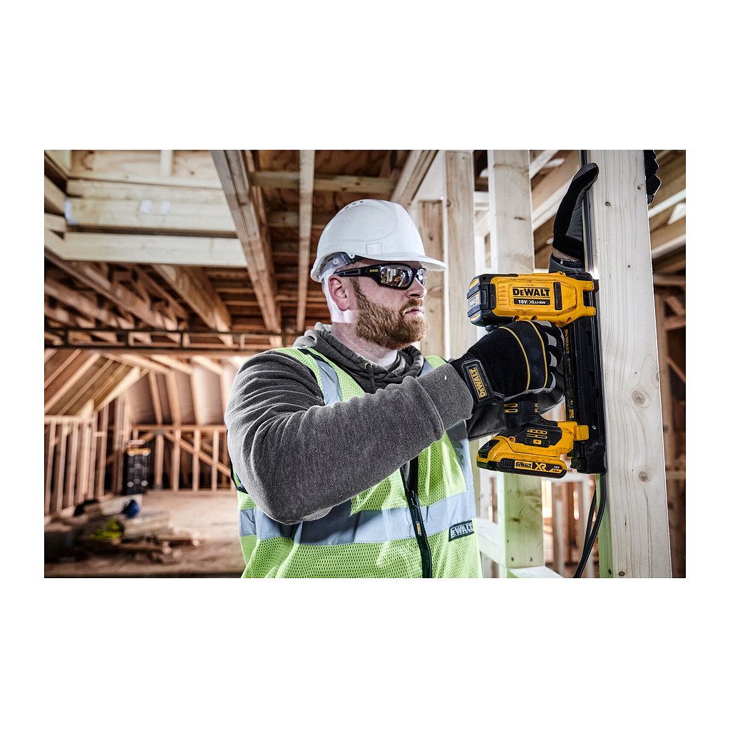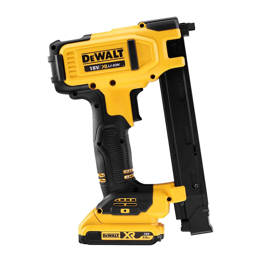 • Táto akumulátorová zošívačka je napájaná lítium-iontovým akumulátorom Dewalt 18V XR® (k dispozícii buď s akumulátormi a nabíjačkou, alebo len ako stroj pre používateľov, ktorí ich už vlastnia).