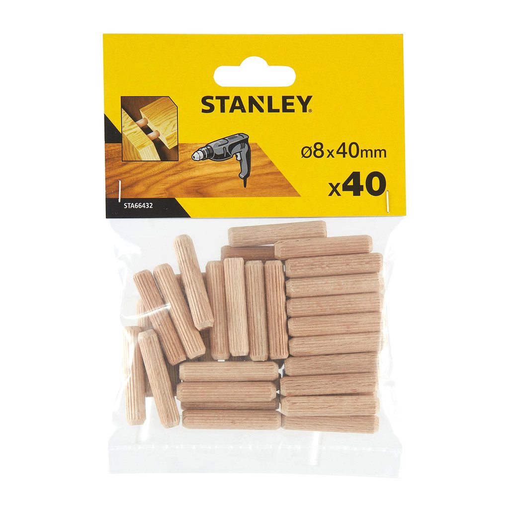 Domov » Náradie » Príslušenstvo » Spojovací materiál » Kolíky » Stanley STA66432 – Kolík drevený spojovací vrubkovaný, Ø8mm, dĺžka 40mm, 40ks