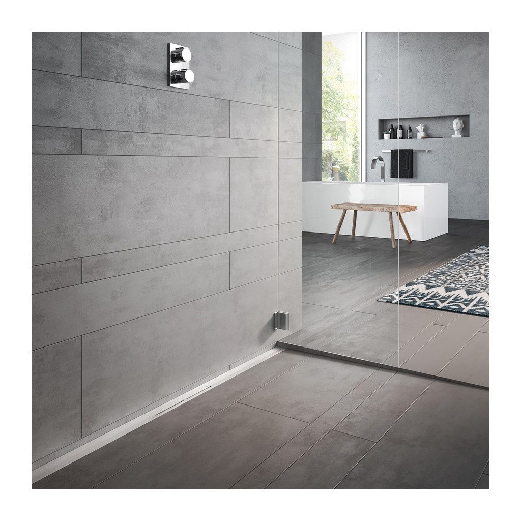 Atraktívny dizajn – rôzne použitia.TECEdrainprofile je ideálnym riešením pre moderné projektovanie sprchovacieho priestoru. Je tomu tak preto, že sprchovací profil sa hodí takmer ku všetkým materiálom, konštrukciám a farebným schémam. Dokonca aj veľkoformátové obklady a podlahy z prírodného kameňa skvele vyniknú, pretože keď je TECEdrainprofile inštalovaný blízko stene alebo na stene, podlahu možno navrhnúť bez spádových rezov a bez použitia zlomkov kachličiek.