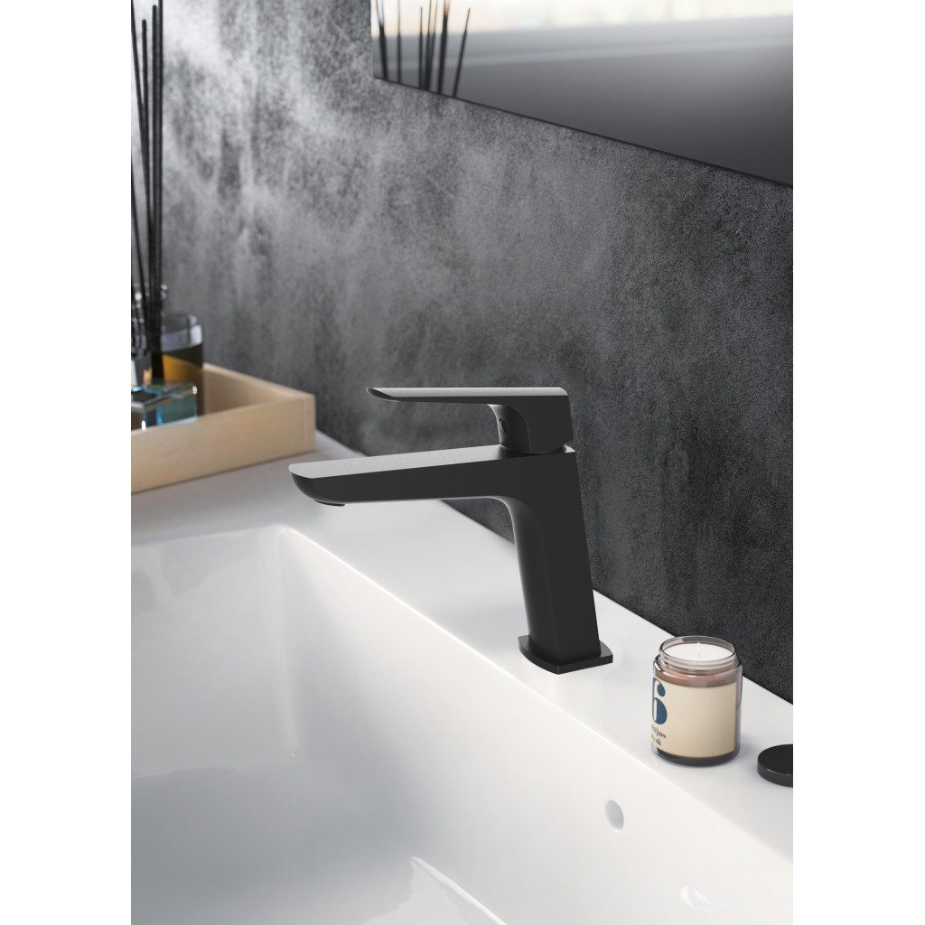 Teorema Edge – Umývadlová batéria stojanková, výpusť CLICK, výška 100 mm, čierna matná
