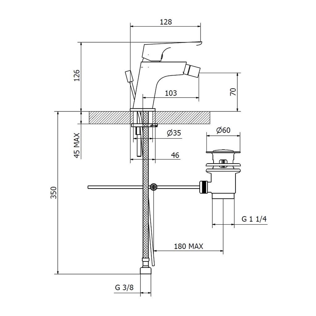Teorema Edge – Bidetová batéria s odtokovou garnitúrou, chróm 8E401