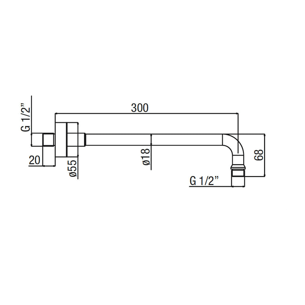 Alpi Idroterapia – rameno na hlavovú sprchu, 1/2“, 300mm, chróm