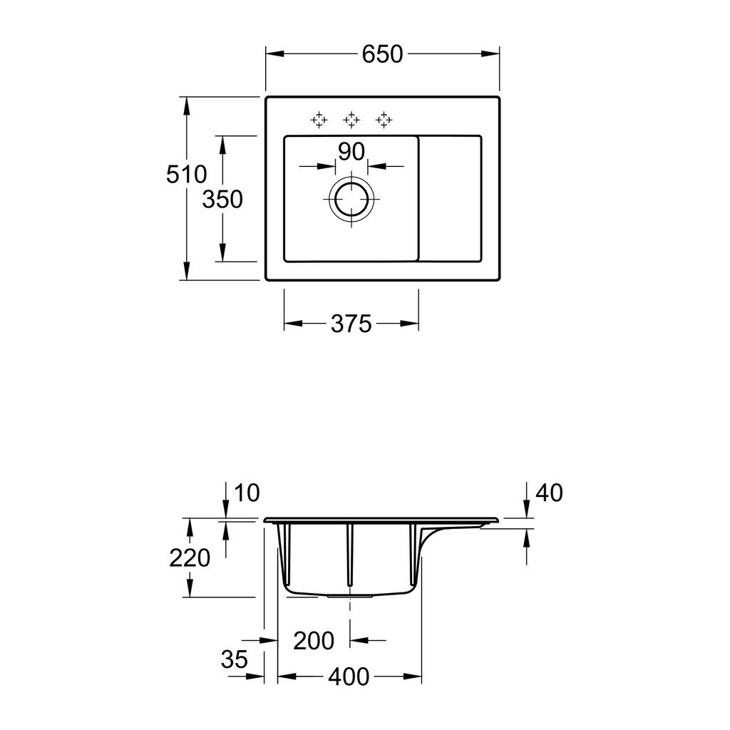 • Klasická zápustná inštalácia pre keramické kuchynské drezy