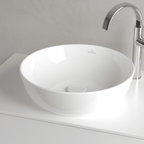 Domov » Sanita » Kúpeľne » Umývadlá » Umývadlové misy » Villeroy & Boch ARTIS – Umývadlo na dosku, Ø 430 mm, bez plochy pre batériu, biela Alpin 41794301