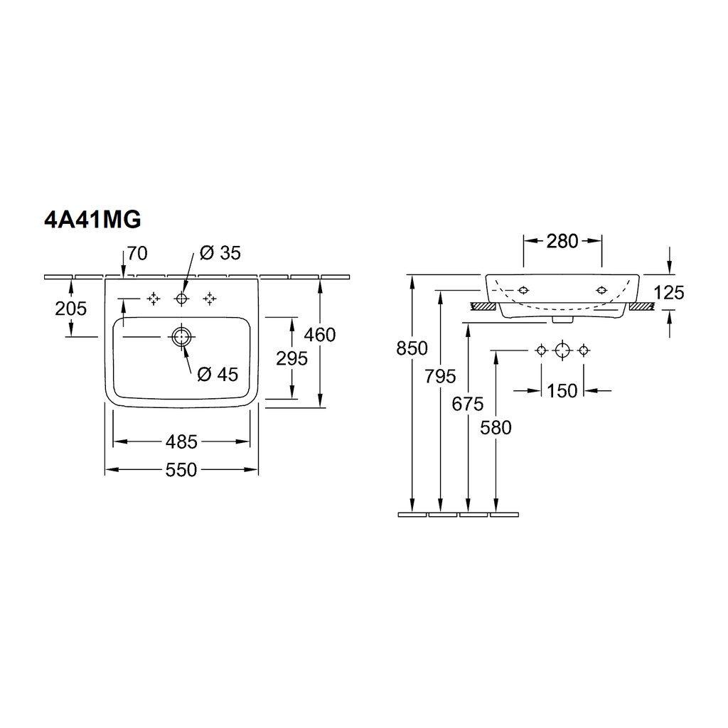 O.NOVO : Umývadlo 550x460x175 mm, s prepadom, brúsené, alpská biela