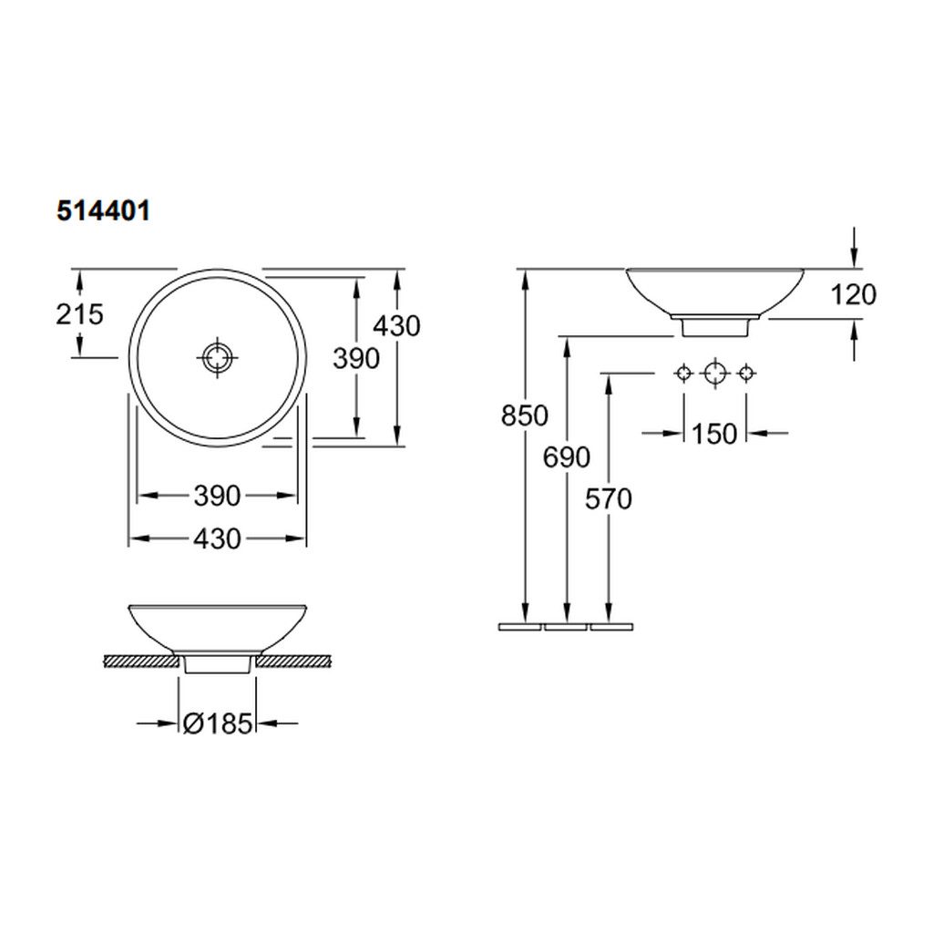 Villeroy & Boch LOOP & FRIENDS: umývadlo na dosku, priemer 430 mm bez plochy pre batériu, alpská biela 51440101