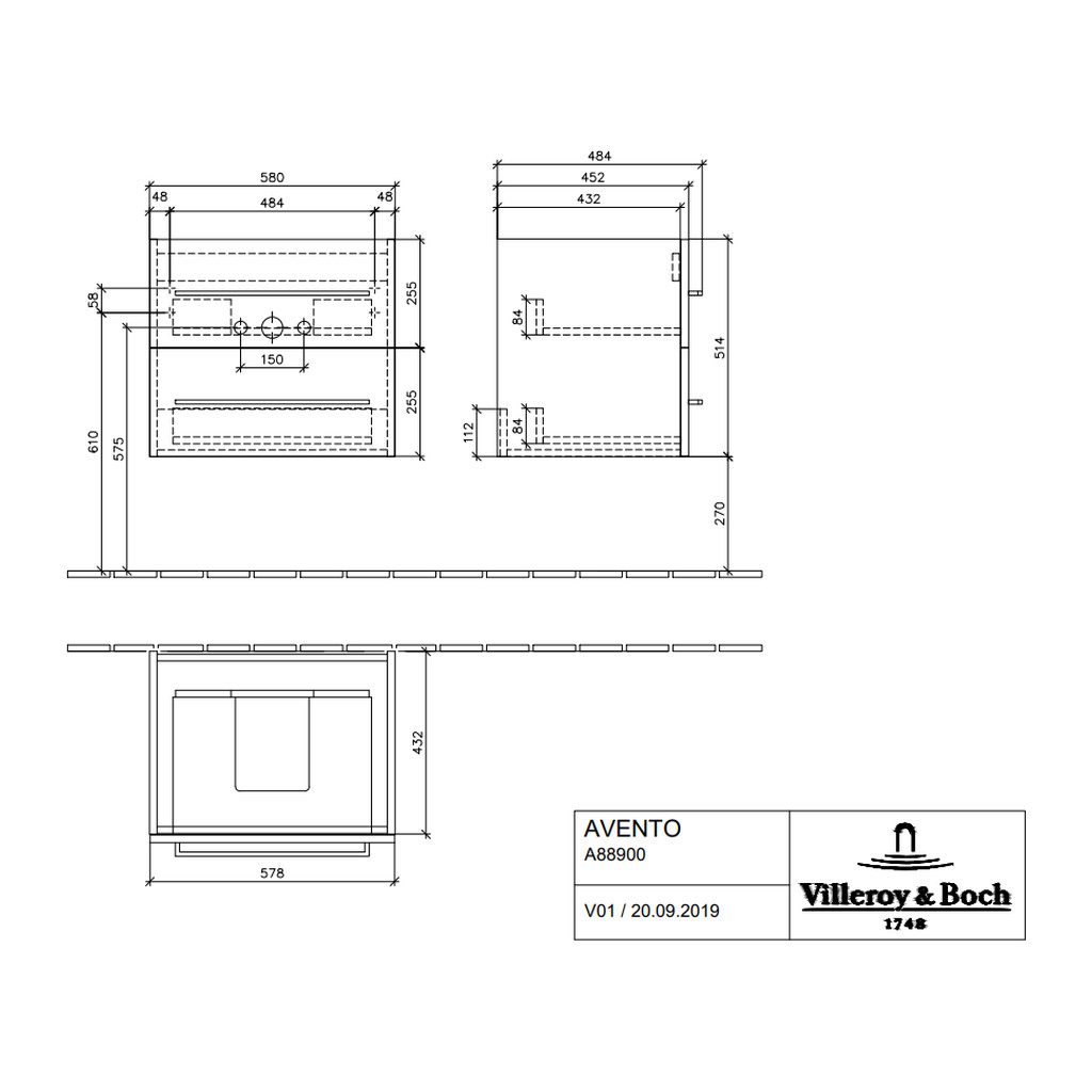 Domov » Sanita » Kúpeľne » Nábytok do kúpeľne » Umývadlové skrinky » Villeroy & Boch AVENTO : spodná skrinka 580x514x452mm, 2 výsuvné diely, Arizona Oak, A88900VH