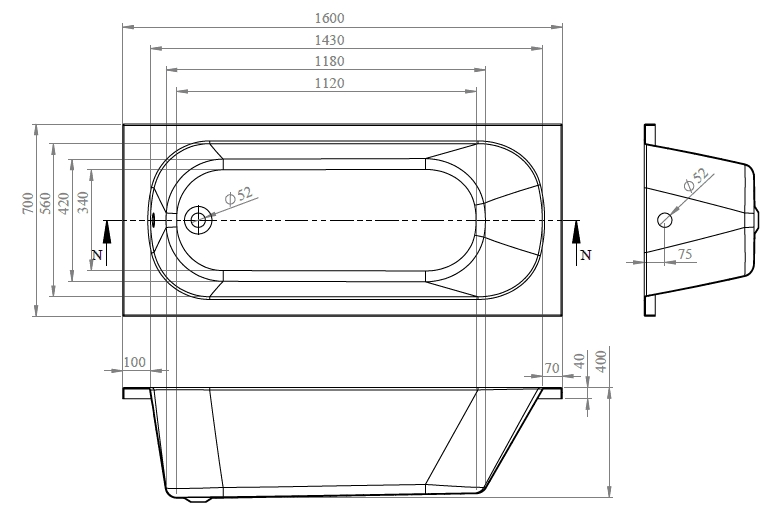 Domov » Sanita » Kúpeľne » Vane » Obdĺžnikové vane » Vima GALAKTA – akrylátová vaňa 160×70 cm, s nohami, biela
