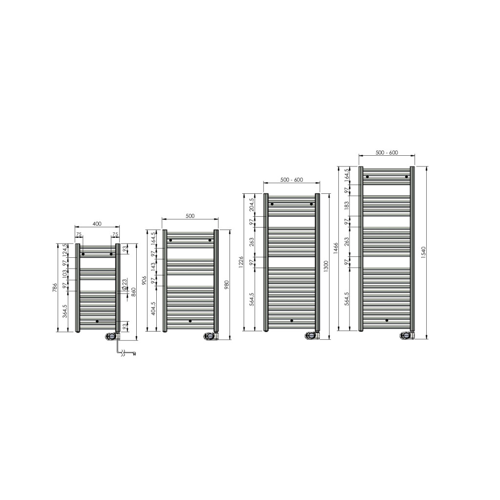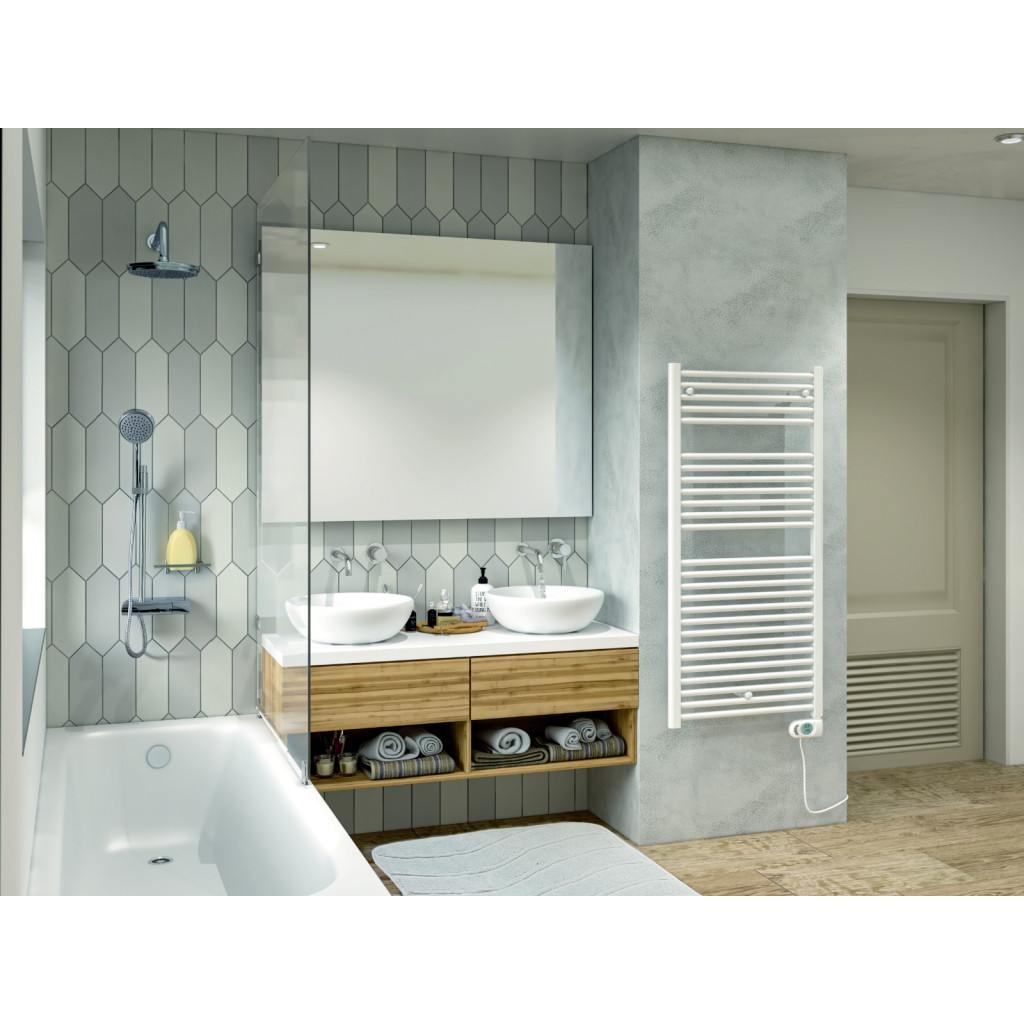 • V pravej zvislej rúrke dole vstavaná elektrická vykurovacia tyč Musa Eco, stupeň ochrany IP 44, spĺňa požiadavky na EcoDesign