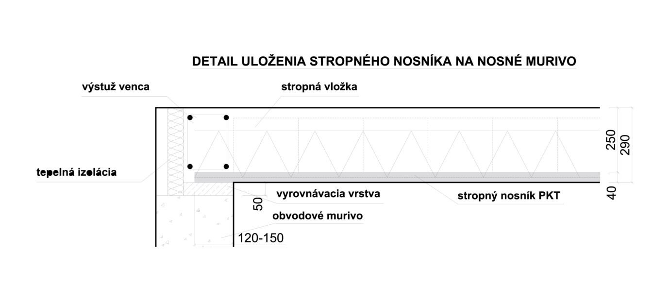 Stropný nosník musí na korunu nosného múru dosadať celou svojou úložnou plochou. Plocha, na ktorú sa nosníky ukladajú musí byť spevnená, čistá a vodorovná. V prípade väčšej nerovnosti nosného muriva je jeho koruna dodatočne opatrená vyrovnávacou vrstvou betónu o hrúbke 50 mm, ak výrobca muriva nedeklaruje inak. Dĺžka uloženia nosníka na korunu nosného múra je min. 120 mm, pri nosníkoch dlhších ako 4,5 m je uloženie min. 150 mm.